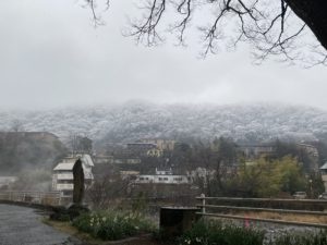 箱根湯本も牡丹雪が強弱しながら降り続いて居ります。