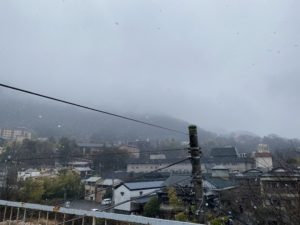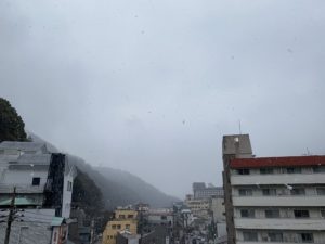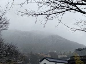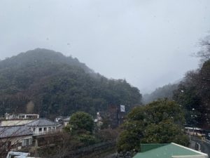 下らない戯言はこの辺で、雪を纏った箱根ですが、湯本周辺迄雪雲が降りてて、直ぐそこまでしっかり雪を被って居ります、開店前に撮影した画像を下記に添付します