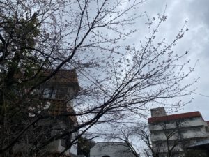 木々全体の蕾はピンク色でいつでもどの辺りからでも蕾がほころび始めてもおかしくない状態と言えます、この先がたのしみです、またお向かいさんやお隣さんのソメイヨシノは以下のがぞうにの通りです
